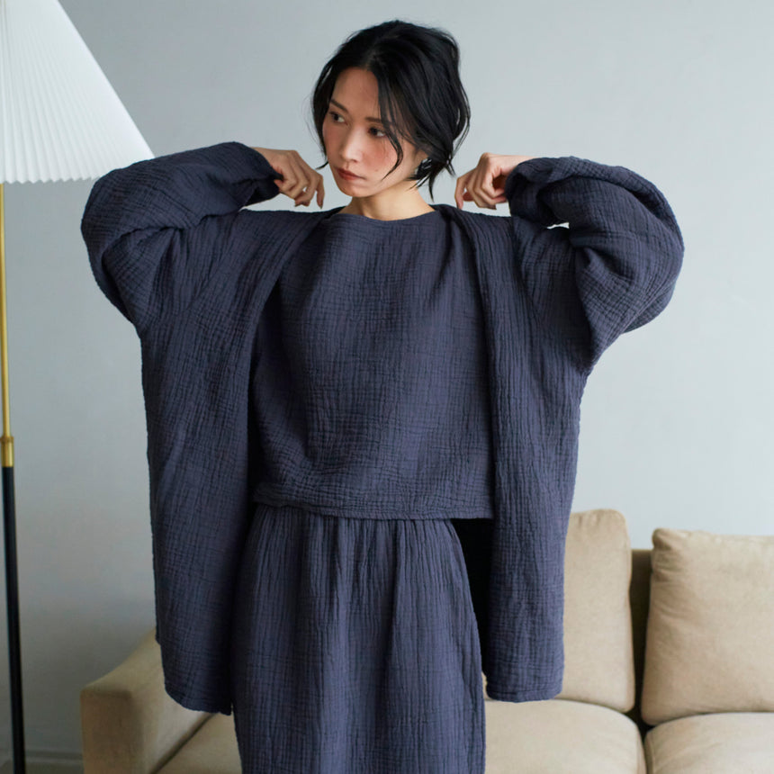自宅ユースに限定せず、いつどこで何をする時にも纏いやすい、着る場所を選ばず、家の中も外もシーンレスに寄り添ってくれるライフスタイルウェア